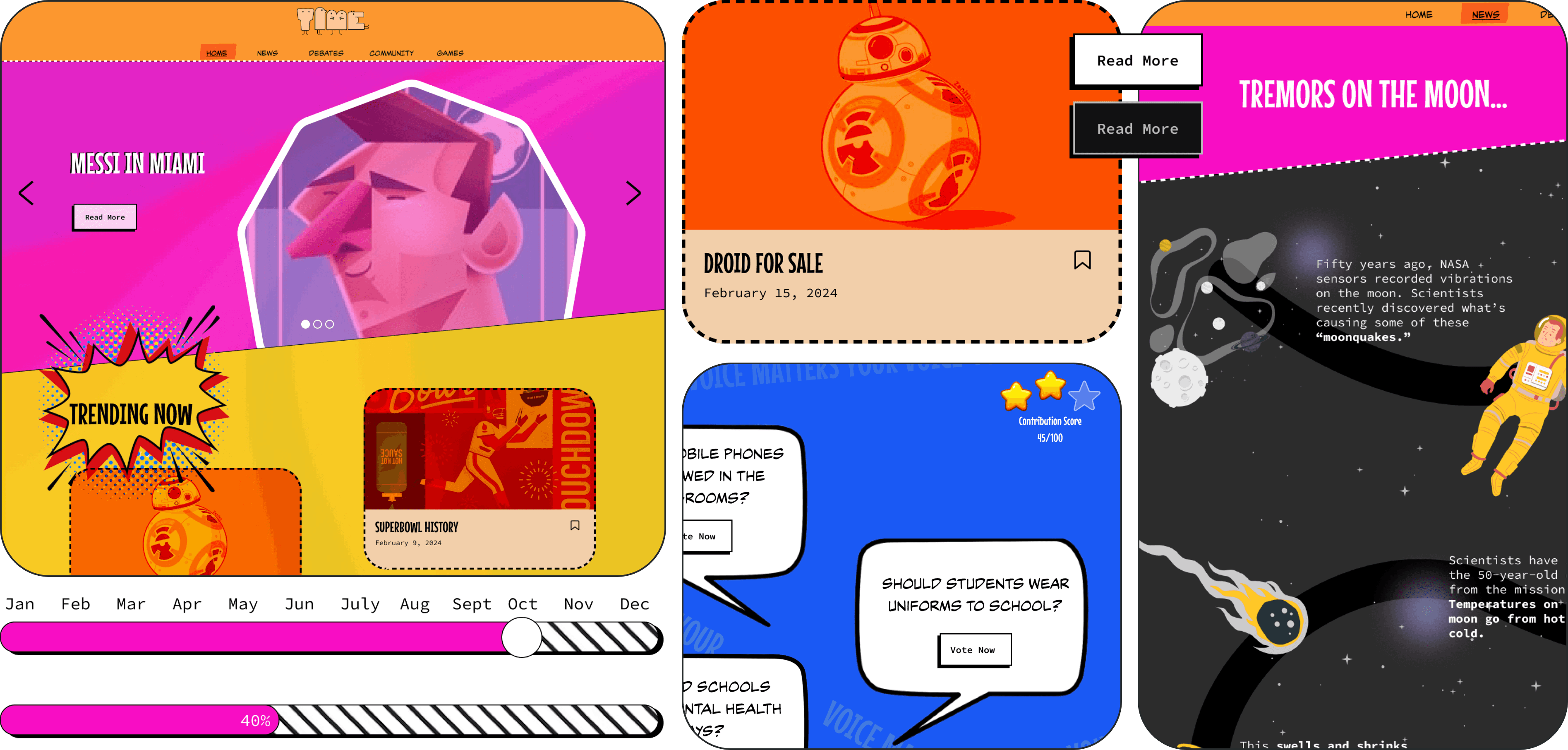 A visual design-focused project aimed at making the “Time for Kids” news platform more playful, colorful, and engaging for young readers.