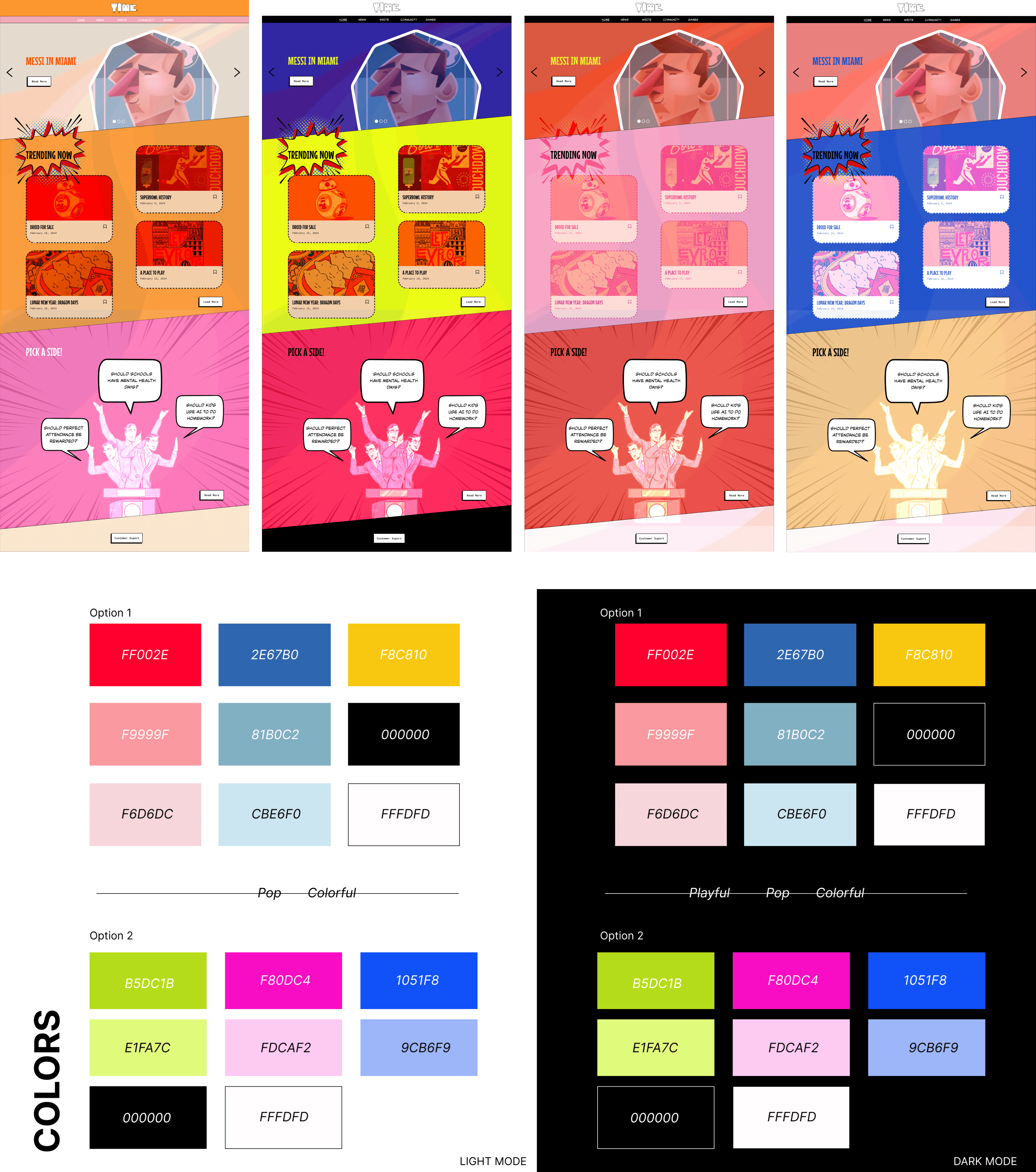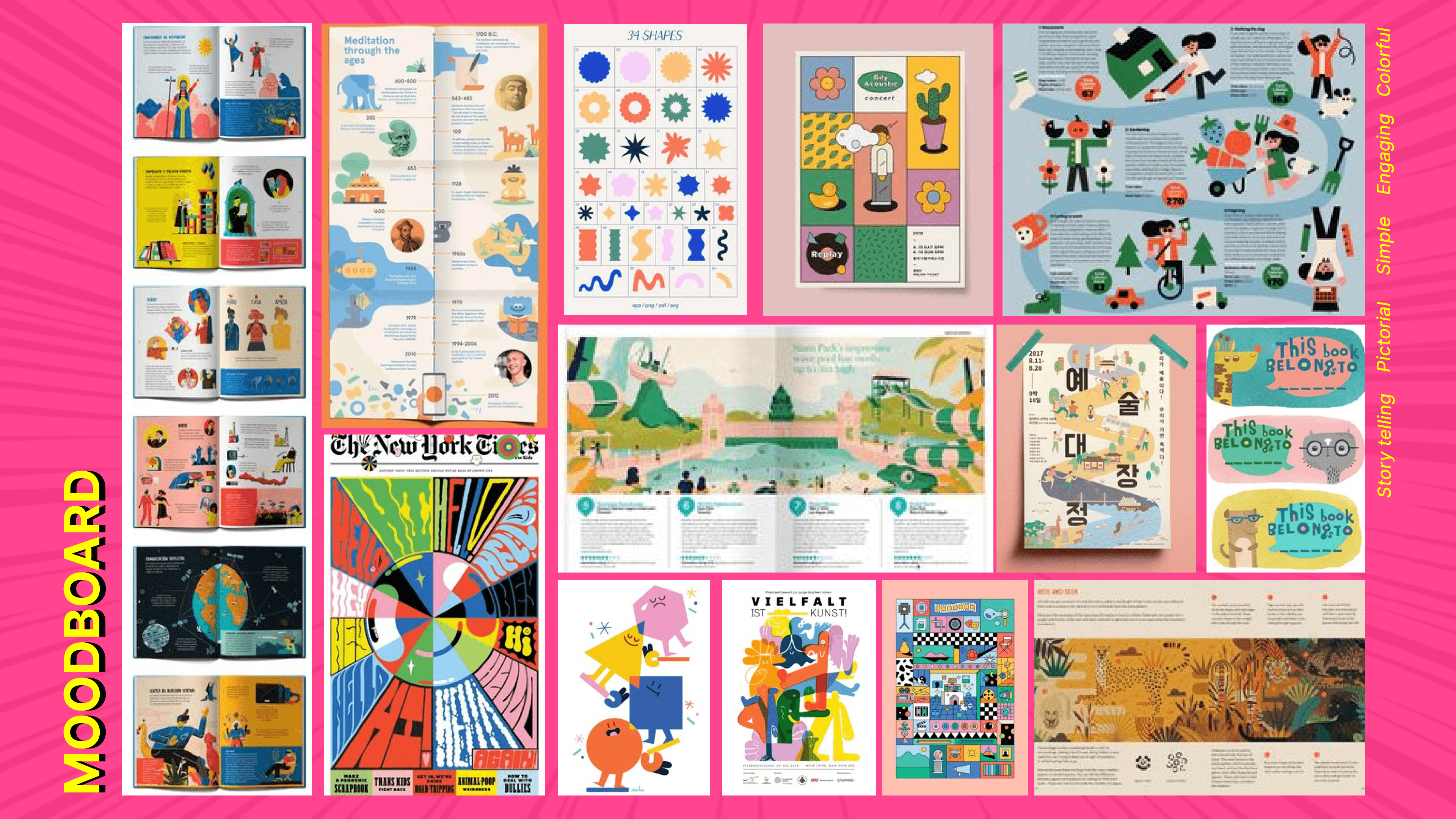 I wanted to use bright, pop colors to make the design lively and appealing. Kids are naturally drawn to bold, familiar colors that signal fun and energy. I started with primary colors for their simplicity and clarity but softened them into more harmonious shades to avoid visual overload. This balance keeps the design playful, inviting, and easy on the eyes — perfect for young readers navigating the news.