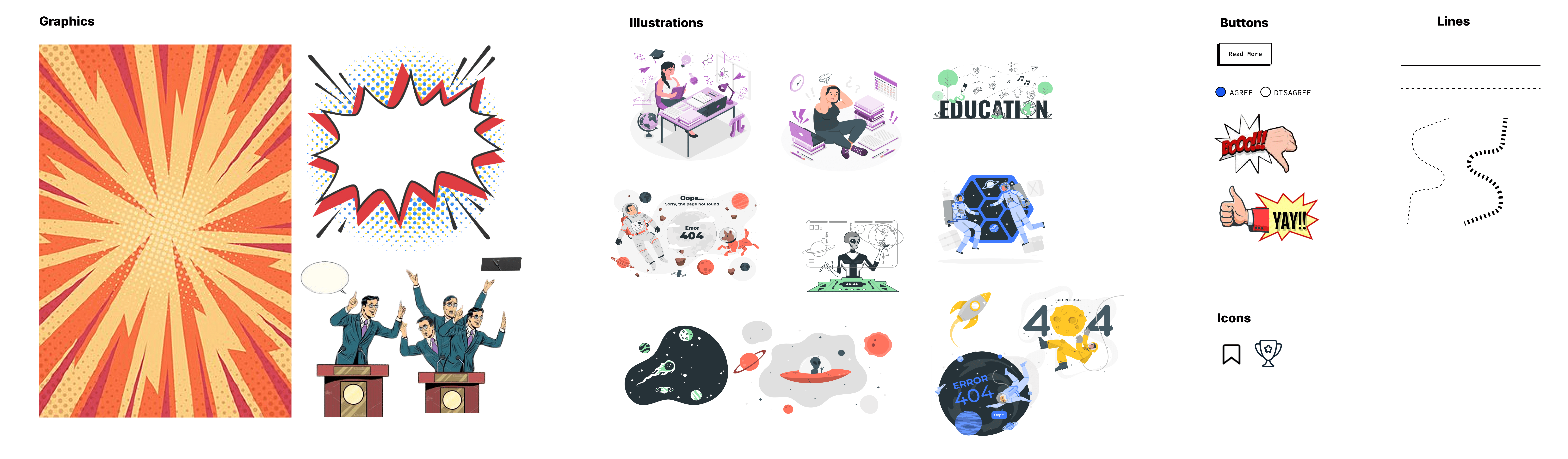To reimagine news for children, I explored styles from comic books, illustrated magazines, and educational cartoons. These sources helped define a tone that feels playful but not chaotic — where bright colors, expressive characters, and clear visual hierarchy invite kids to explore without overwhelming them.